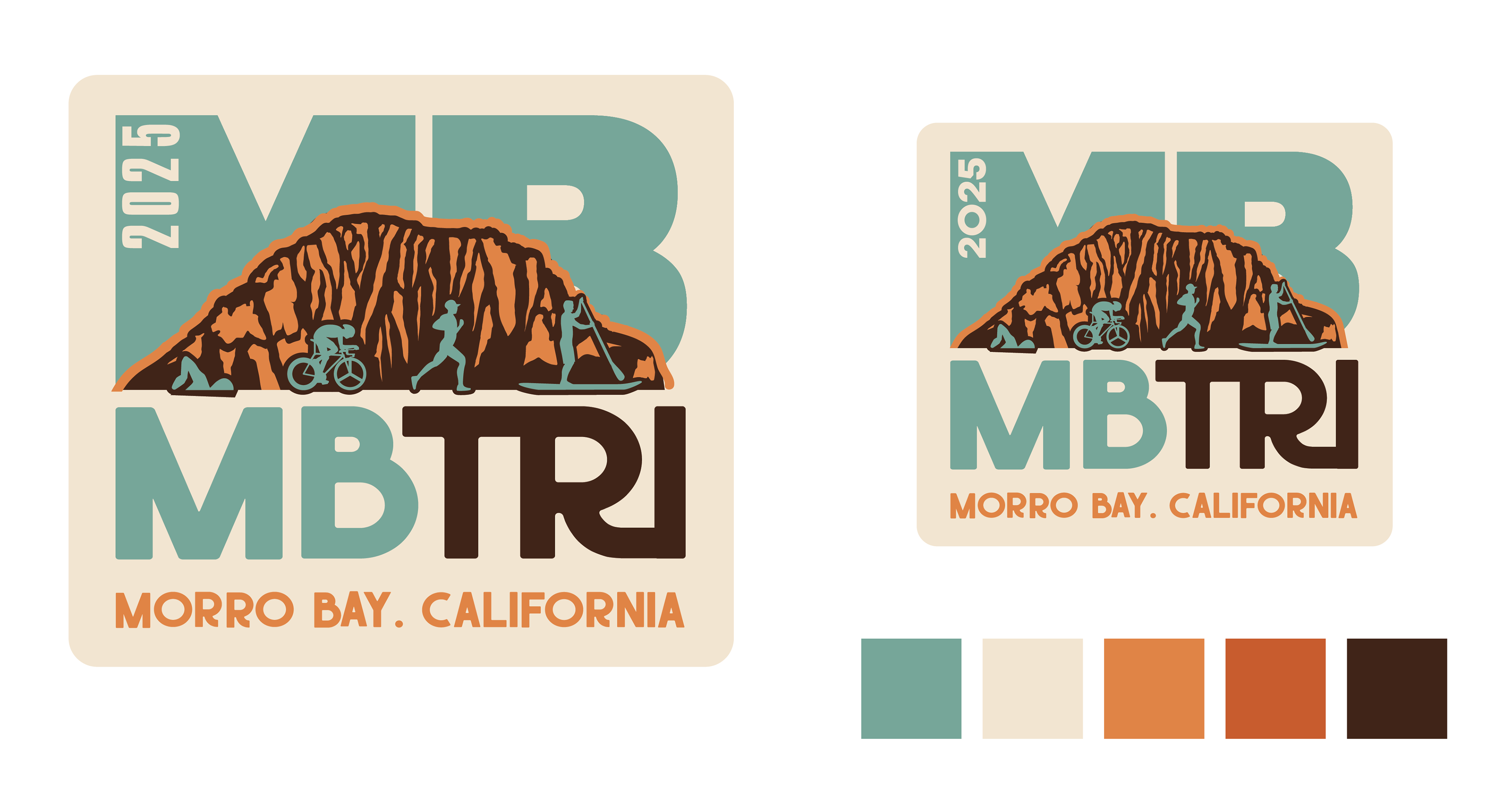 I was hired to design the look for the 2025 Morro Bay Triathlon. Content included brand identity, posters, digital materials, a cycling/triathlon kit, and medals for the race.
