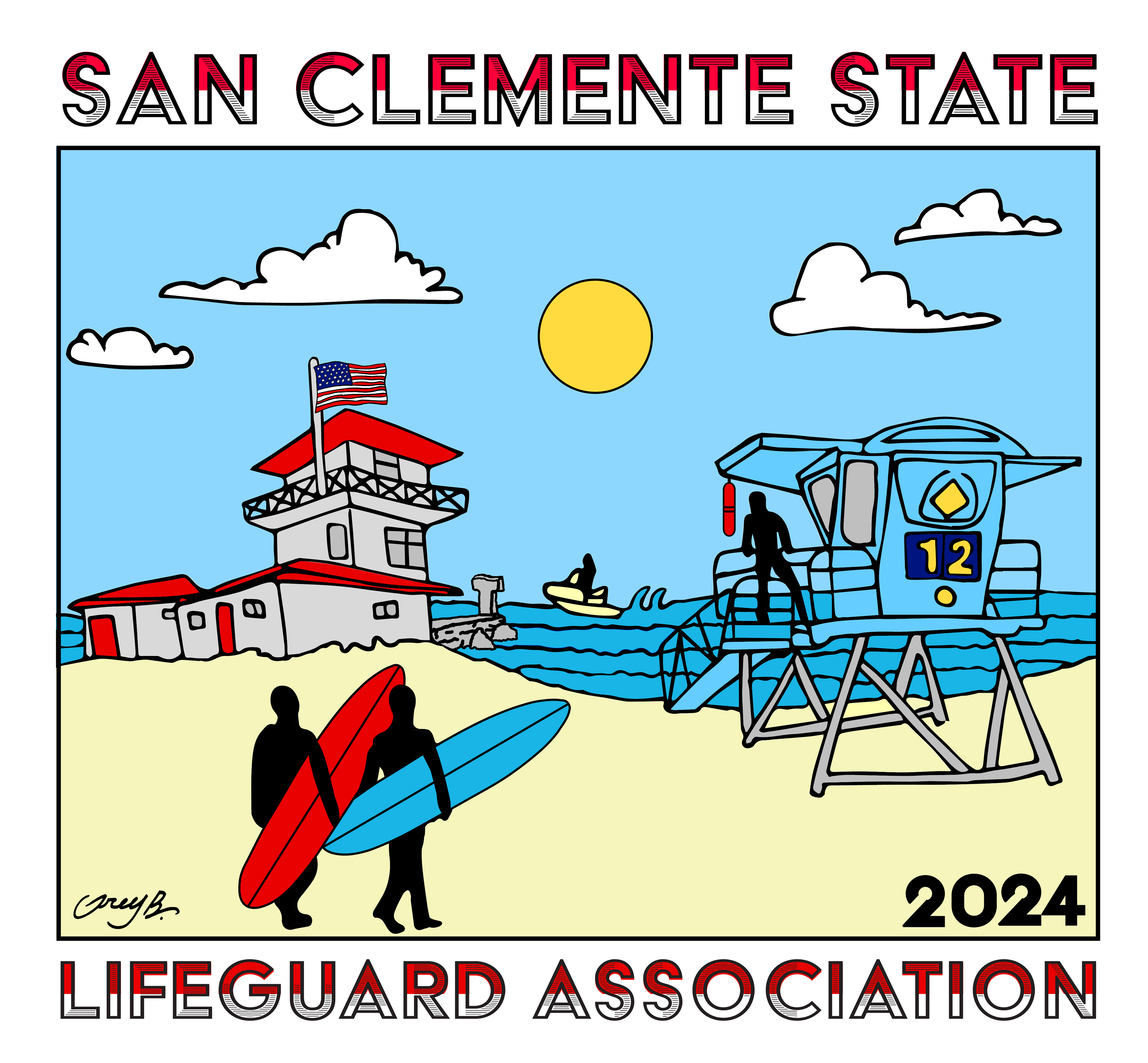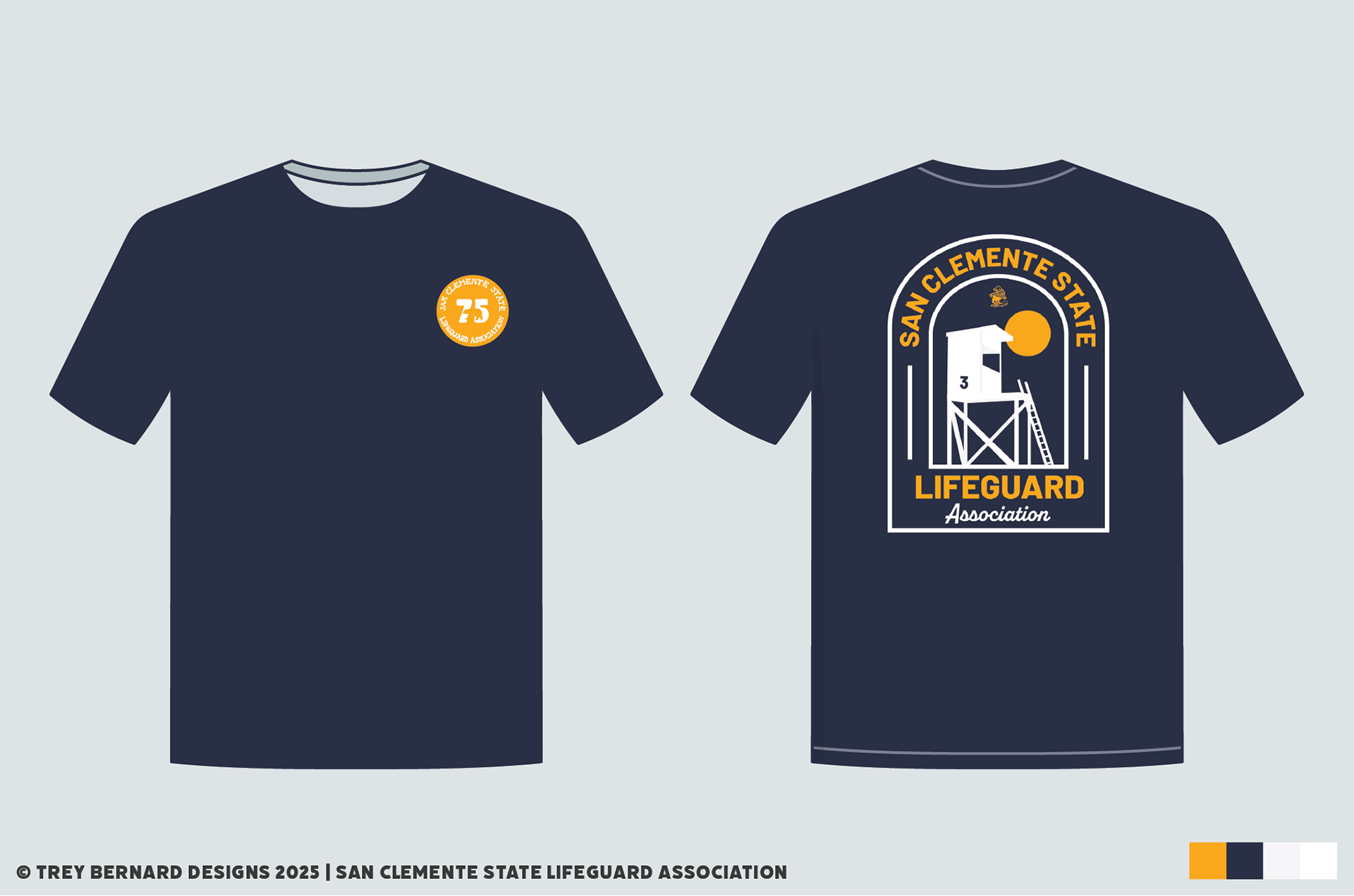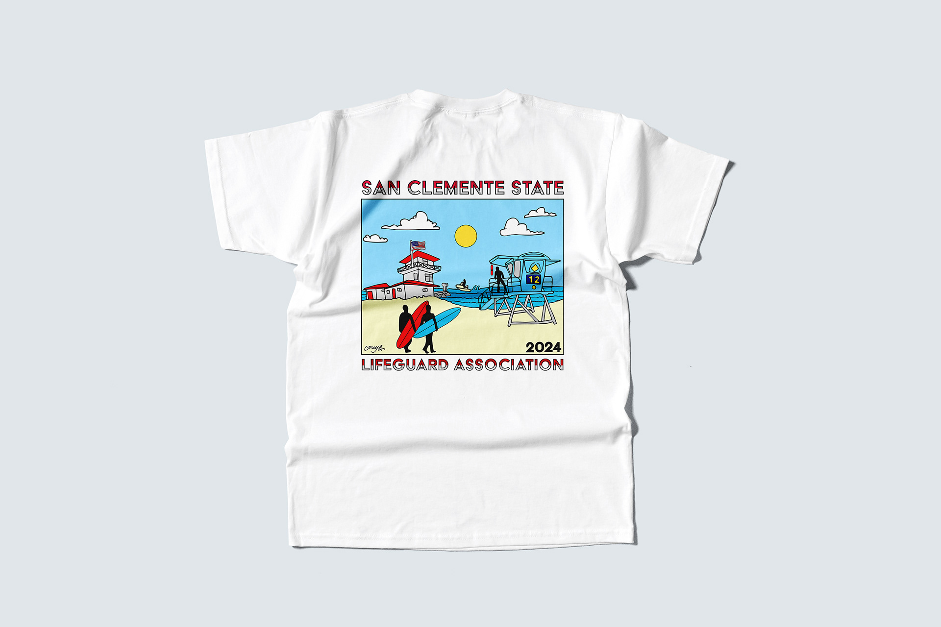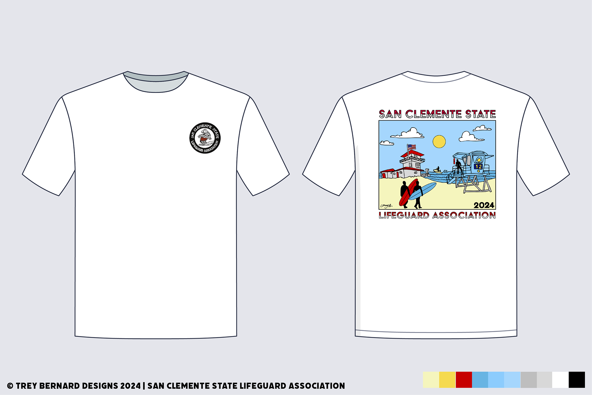 As a Graphic Designer for the San Clemente State Lifeguard Association, I have been able to design the association's Shirts for the last two years. These shirts are sold to Alumni and Current Lifeguards within the department.